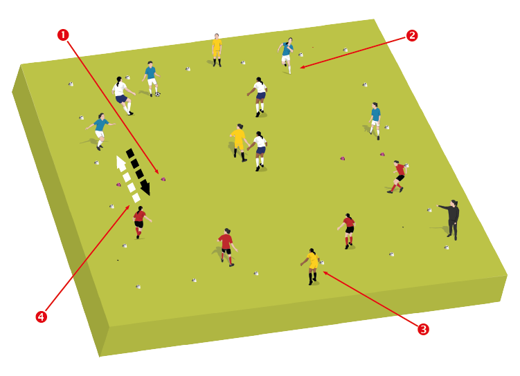 Also encourage players to be positive and play penetrating passes. In possession, teams should make the area big and show courage and composure.