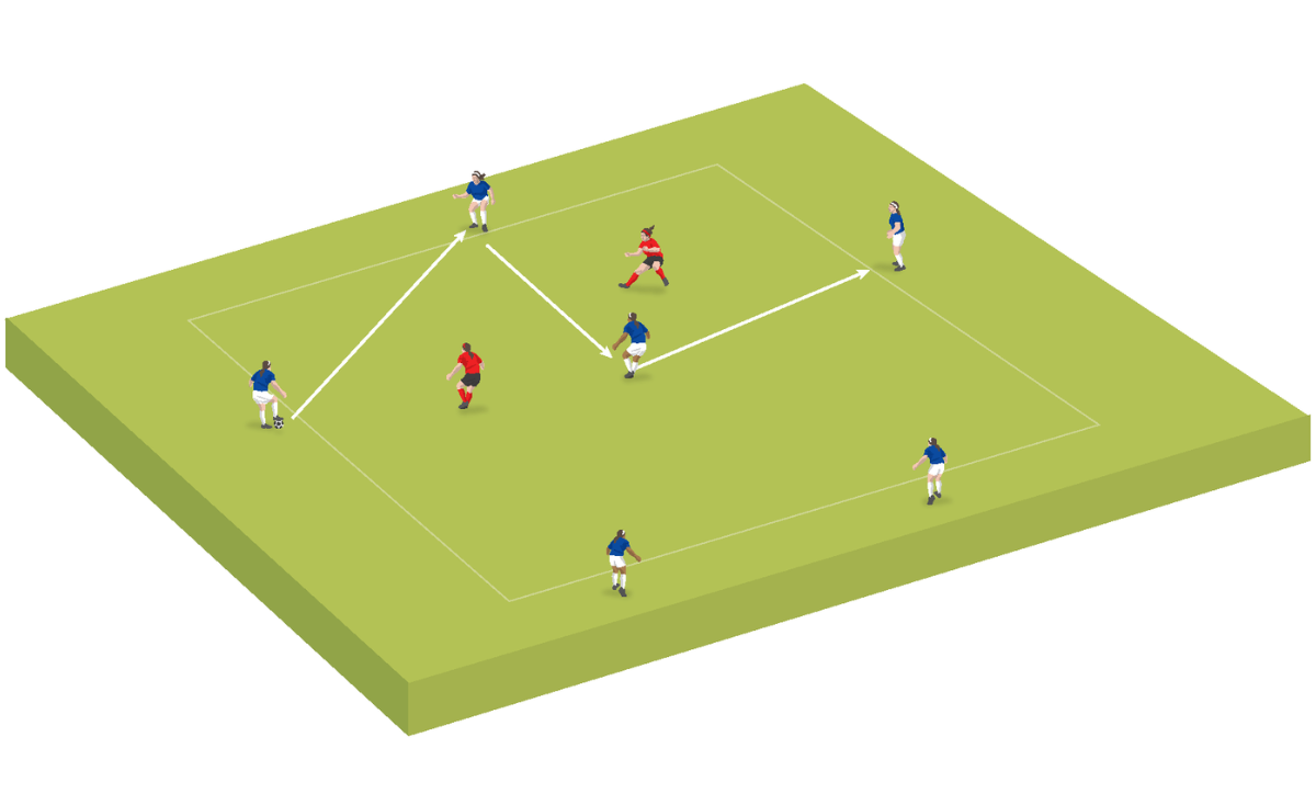 Playing in a slow tempo, the attacking players aim to switch play to the other half of the pitch, which they can do after four passes
